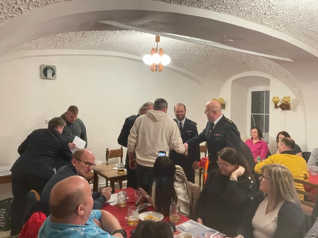Marcela a Matyáš Votroubkovi byli vyslanci na výročku k sousedům. Vše proběhlo v přátelském duchu a ke spokojenosti místních. Po pronesení zdravice na nás čekal už jen gulášek a cesta domů. No trochu jsme se zdrželi a vyměňovali si informace....do brzkých ranních hodin.