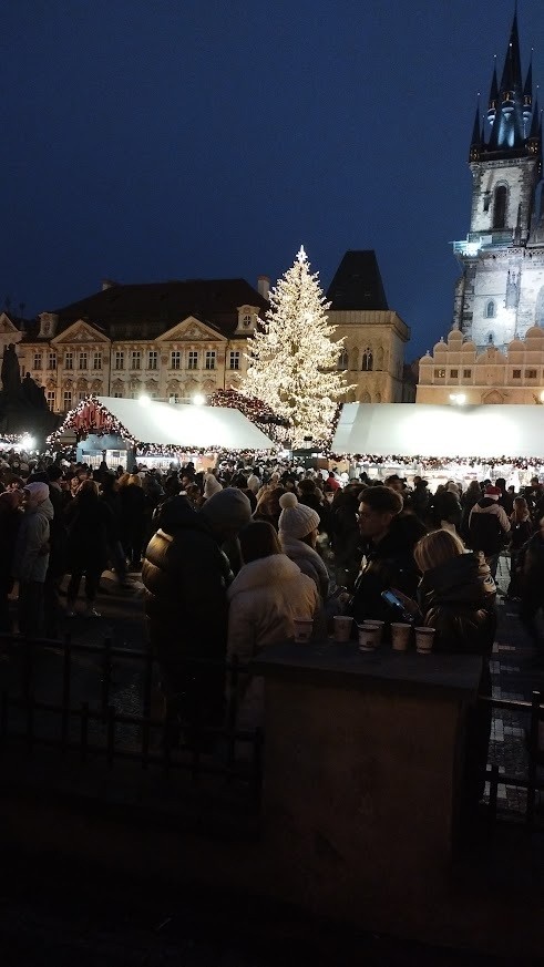 Na Staromáku hlava na hlavě a le stálo to zato. Samá světýlka, stánky a vůně všeho. Jako správní turisti jsme vyzkoušeli svařák, teplou hrušku, špízy, klobásy a palačinky. Světelná šou vánočního stromečku na koledu a nemohl chybět ani Pražský orloj.