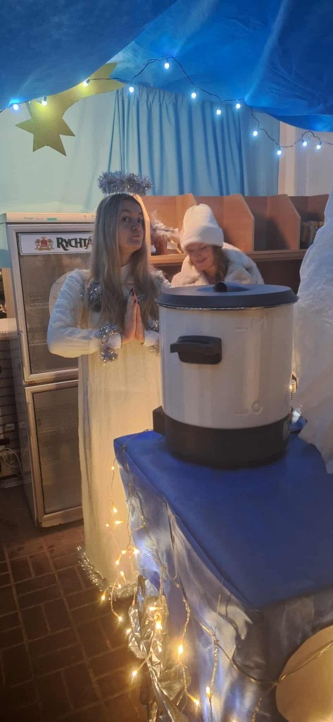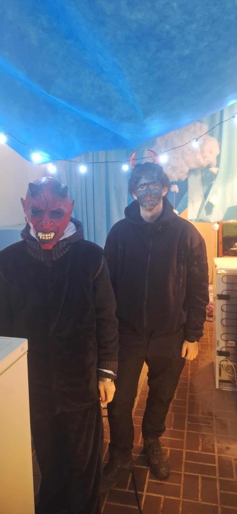 Po skončení akce se všichni znovu semkli: čerti, andělé, rodiče, děti i technická parta. Úklid proběhl rychle, ochotně a s úsměvem – každý věděl, co má dělat, a společným úsilím bylo do půl hodiny hotovo.