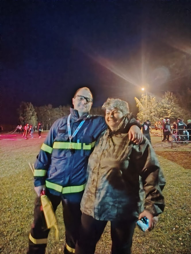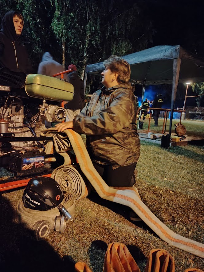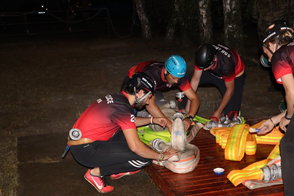 I muži se chtěli vyšvihnout. Při prvním pokusu pozlobila trochu Máru savice, ale čas 31 s byl uspokojující. Druhý pokus byl fakt "hardkór". Kluci byli jak střely. Koš Marťa D., náběr Mára, stroj Aleš S., béčka David, dělič Vojta a útoky Vítek a Mates. Za patama jim hořelo a my viděli jen ohnivou čáru. Voda letela hadicemi a vše vypadalo na neuvěřitelný čas. Voda stříká do terčů. Už, už.... a náhle se rozpojilo Matesovi béčko. No, ale i tak je 6 místo pro nás výhrou .. Díky.